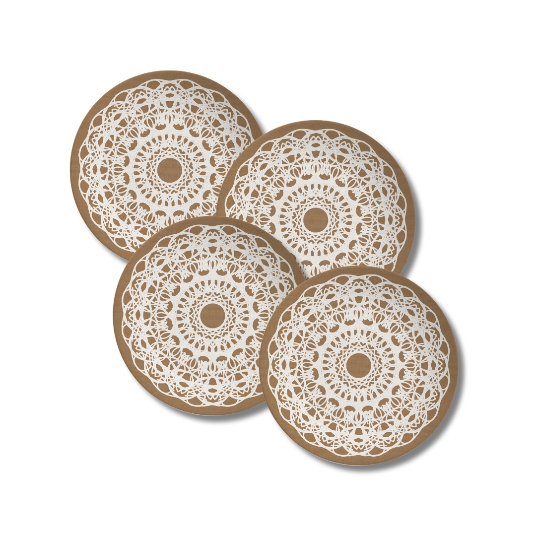 Jogo 4 Pratos de Sobremesa 21cm nas cores Marfim e Terra coleção RENDEIRAS por Alleanza. Produtos em cerâmica de alta qualidade.