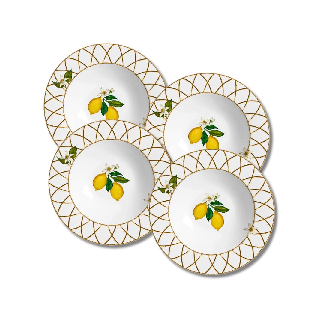 Jogo 4 Pratos Fundos 25cm cor Branco e Amarelho coleção SICILIANO por Alleanza. Produtos em cerâmica de alta qualidade.