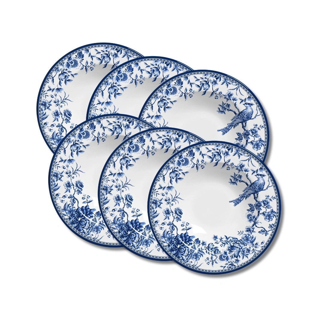 Jogo 6 Pratos Fundos 24,5cm cor Branco e Azul da coleção CHINESE GARDEN por Alleanza. Produtos em cerâmica de alta qualidade.