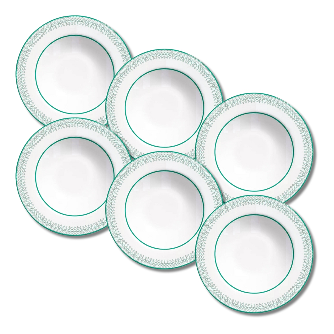 Jogo 6 Pratos Fundos 24,5cm cor Branco e Verde coleção RENDA por Alleanza. Produtos em cerâmica de alta qualidade.