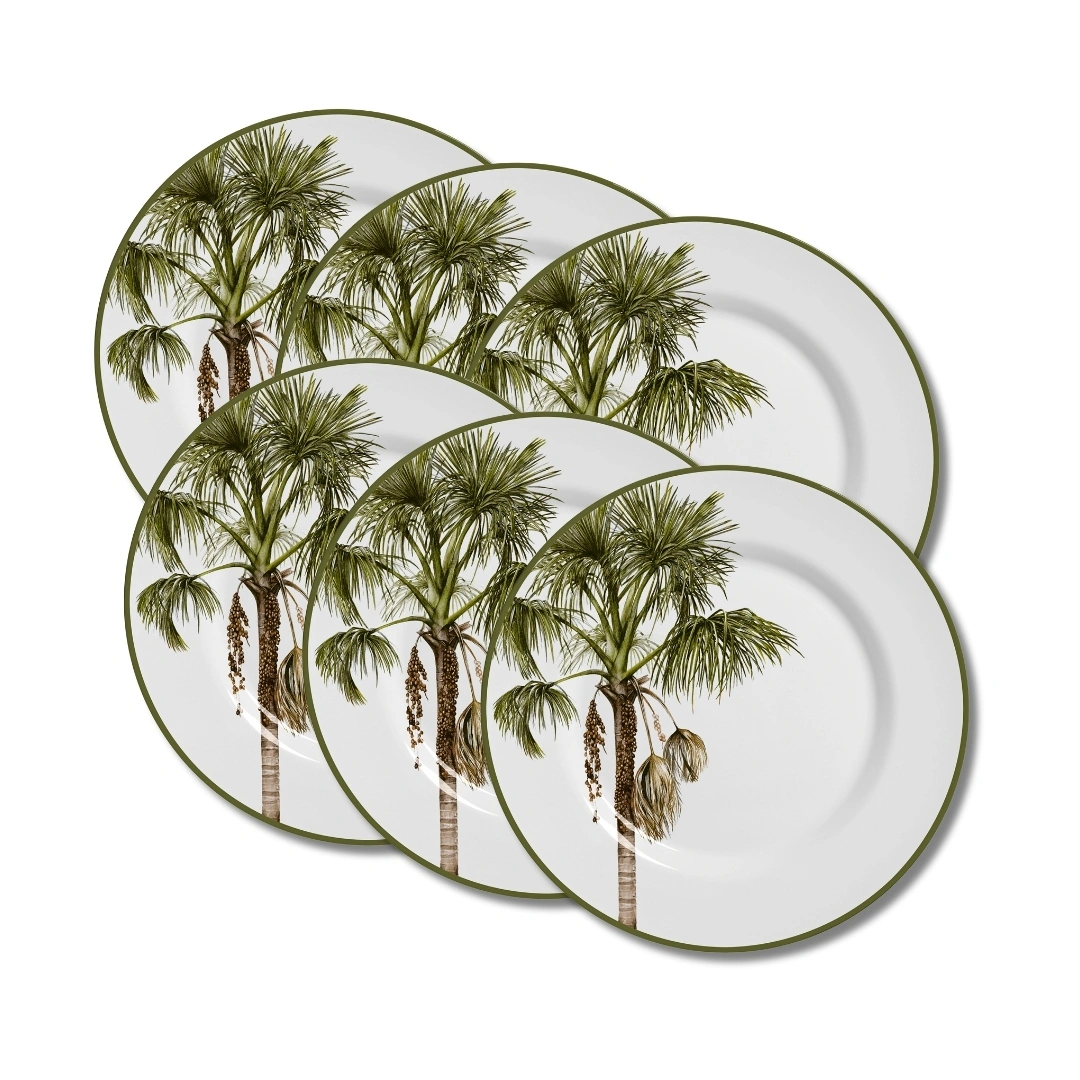 A natureza ganha espaço na mesa de jantar com este elegante jogo de pratos em cerâmica, inspirado em folhagens tropicais.