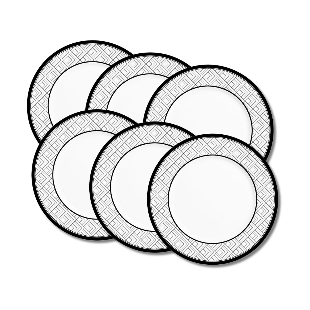 Jogo 6 Pratos Rasos 28,5cm cor Branco e Preto coleção WONDERS por Alleanza. Produtos em cerâmica de alta qualidade.