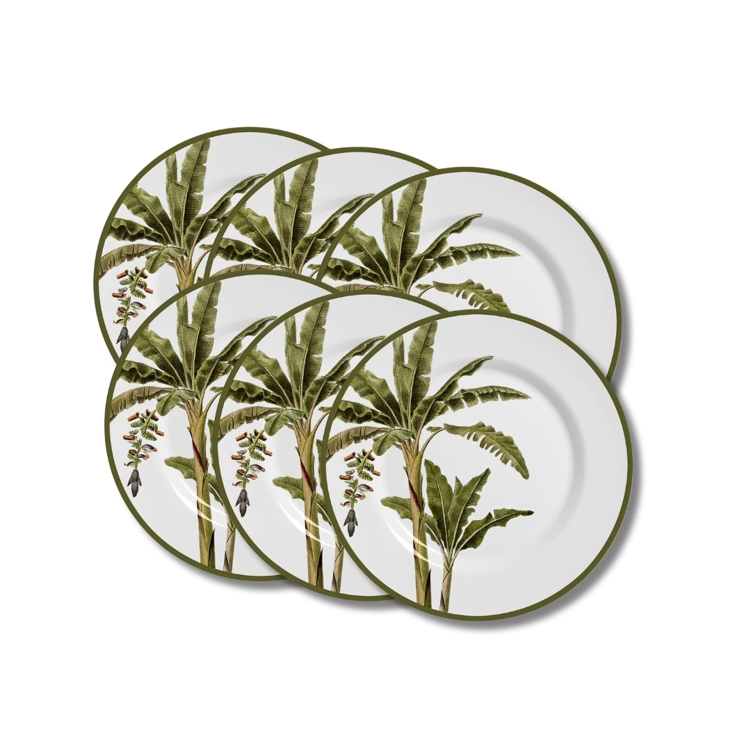 A natureza ganha espaço na mesa de jantar com este elegante jogo de pratos em cerâmica, inspirado em folhagens tropicais.