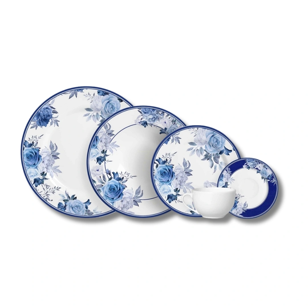 Aparelho de jantar 20 peças branco com estampa floral azul da coleção ANTIQUE por Alleanza. Produzido em cerâmica de alta qualidade, une elegância e durabilidade para sua mesa posta.