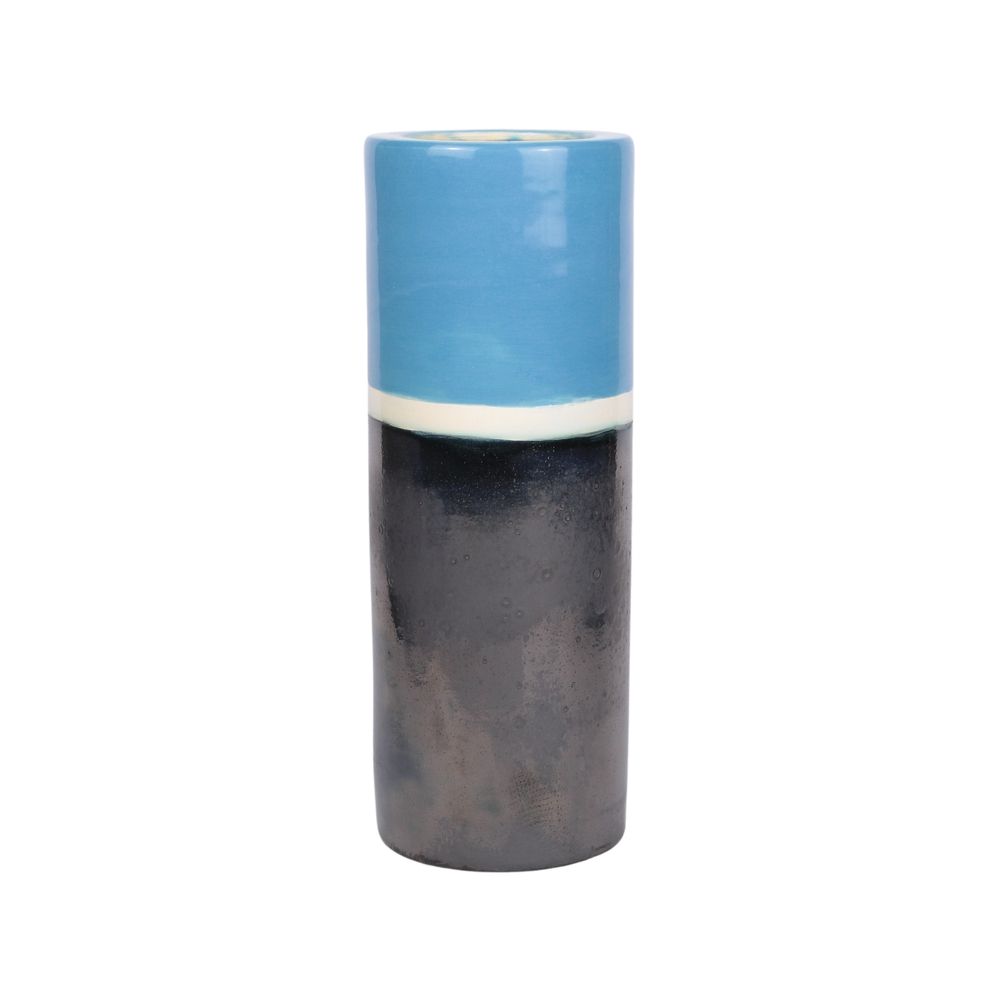 Vaso alto 25cm x 9cm cor Azul e Grafite e Branco coleção Santorini - Feito à Mão AZUL por LA CASA BRASIL. Produtos em cerâmica únicos feitos artesanalmente. EDIÇÃO LIMITADA.