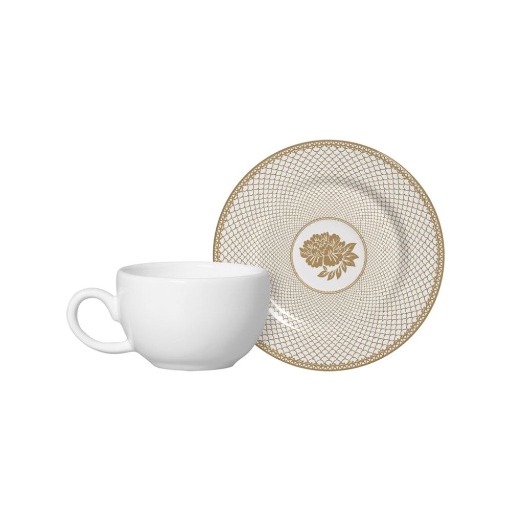 Xícara De Café 80ml com pires cor Branco e Dourado coleção FIRENZE por Alleanza. Produtos em cerâmica de alta qualidade.